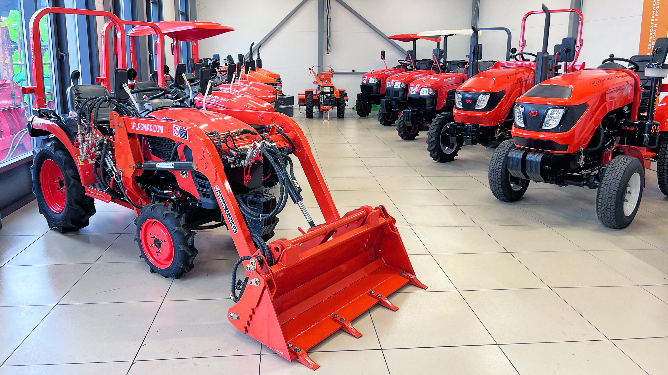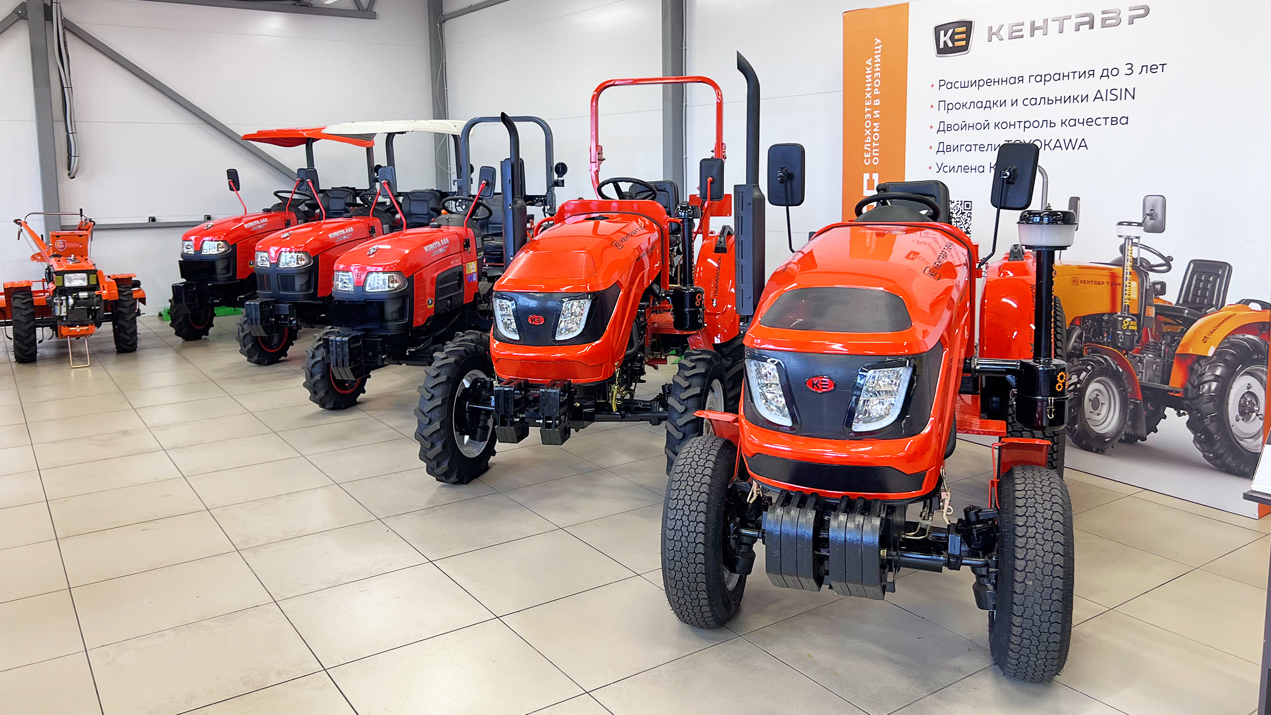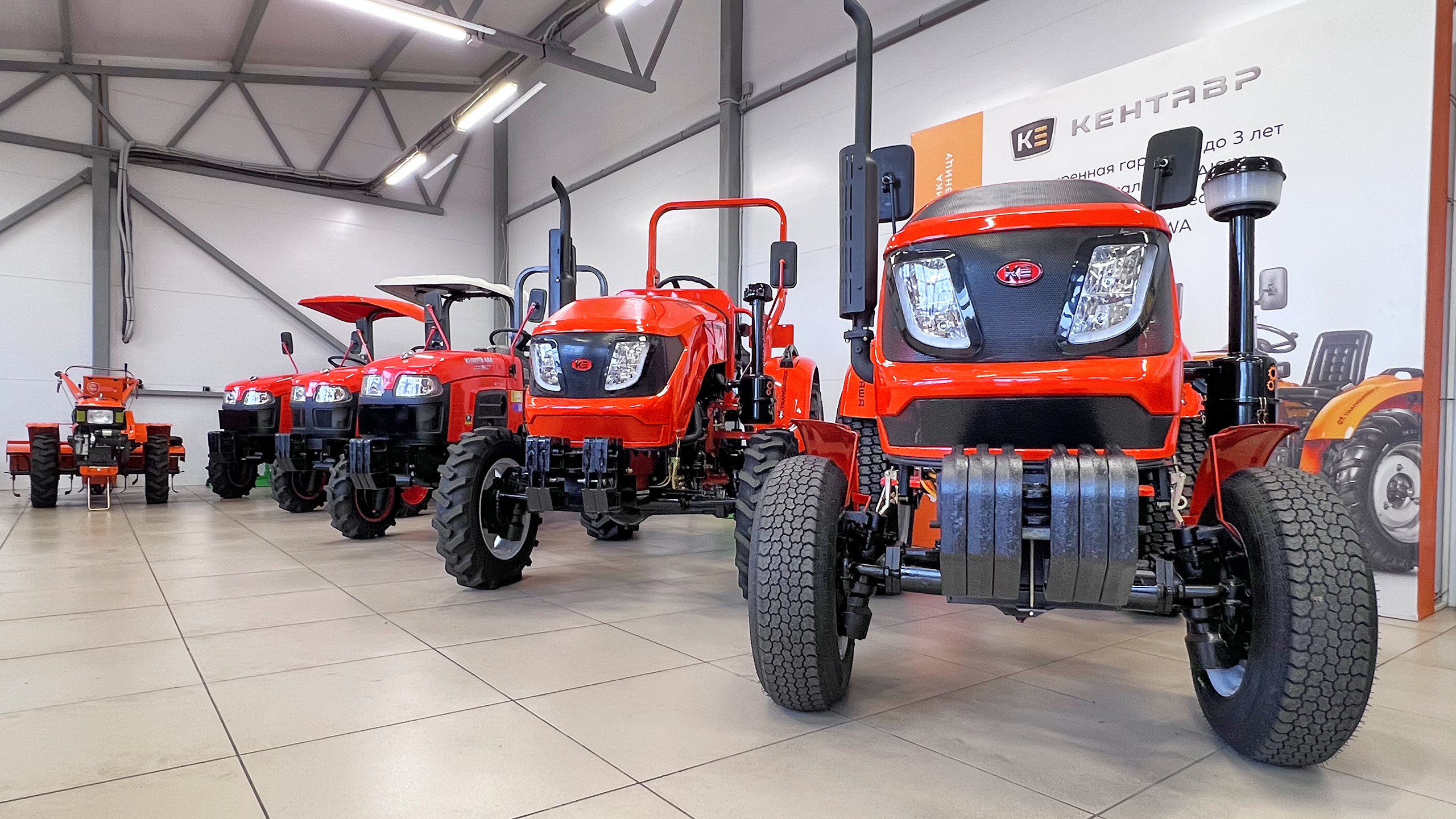 В шоу-руме представлены все модели тракторов Кентавр от 15 до 50 л. с. В магазине можно провести тест-драйв любой модели, а также работает выездной сервис с радиусом действия 500 км.