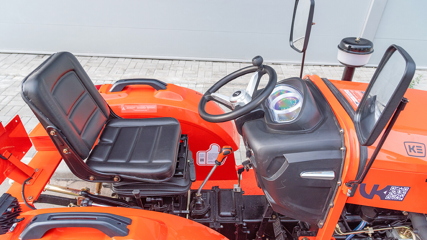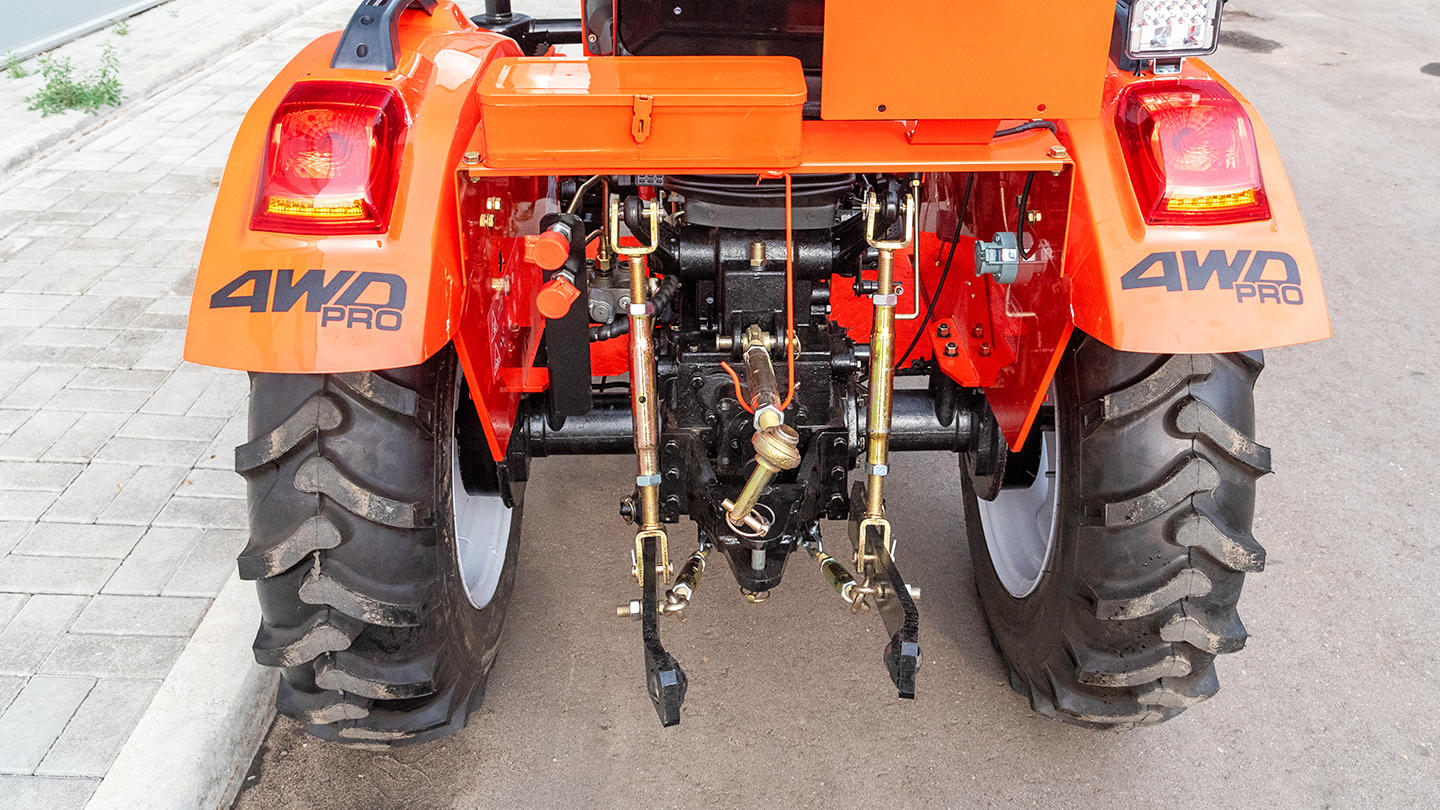 - Полный привод. Подключаемый полный привод и высокий дорожный просвет (223 мм) позволяют мини-трактору уверенно двигаться в тяжелых условиях: на пересеченной местности по снегу или влажной почве.