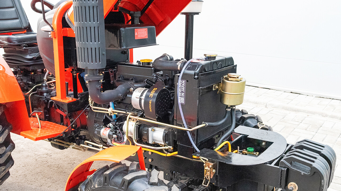 - Двигатель Toyokawa. Машина укомплектована дизельным ДВС объемом 1,5 литра, выдающим 24 л.с. Мотор отличает топливная экономичность (2,4 л/мото-час), низкий уровень шума и увеличенный моторесурс. Высокий крутящий момент гарантирует хорошую тягу на низких оборотах, а надежная система запуска обеспечивает легкий пуск в морозы.
