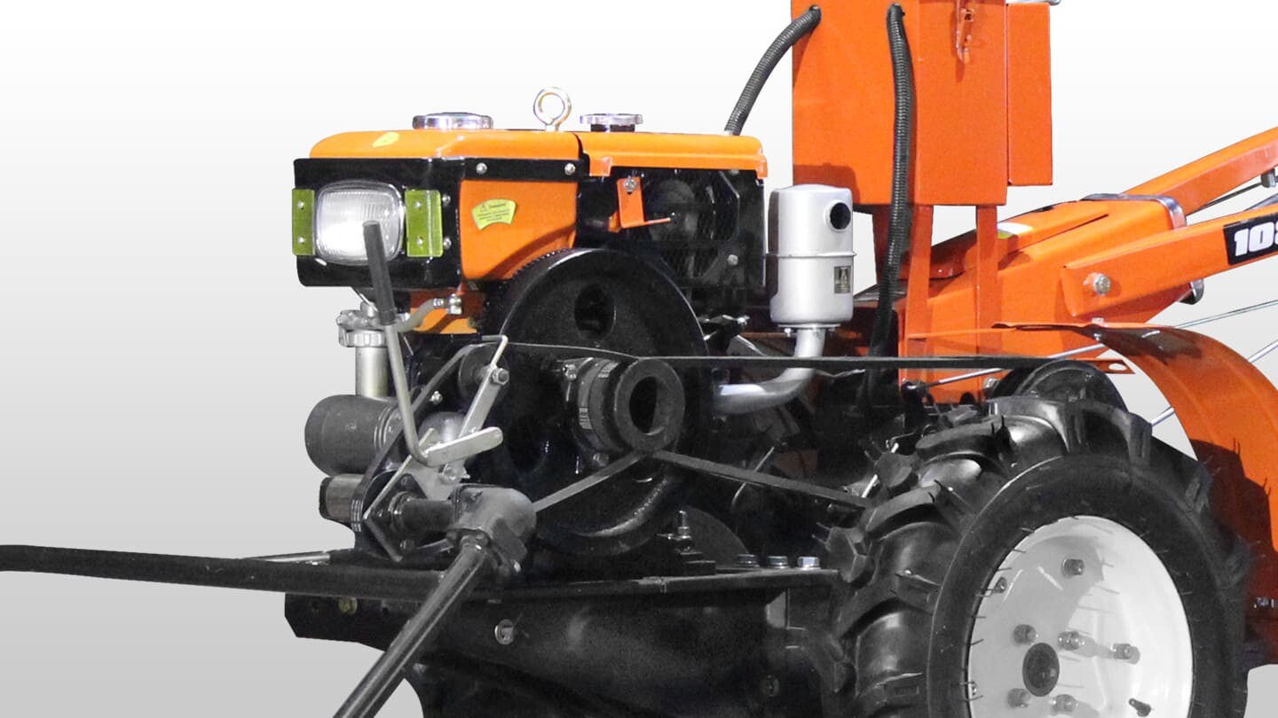 1081д оборудован профессиональной коробкой переключения передач — 6 переднего хода и ДВЕ заднего. Диапазон скоростей составляет от 2 до 25 км/ч. Также присутствует разблокировка дифференциалов с удобными рычагами на руле, которая с легкостью позволяет маневрировать мотоблоком.