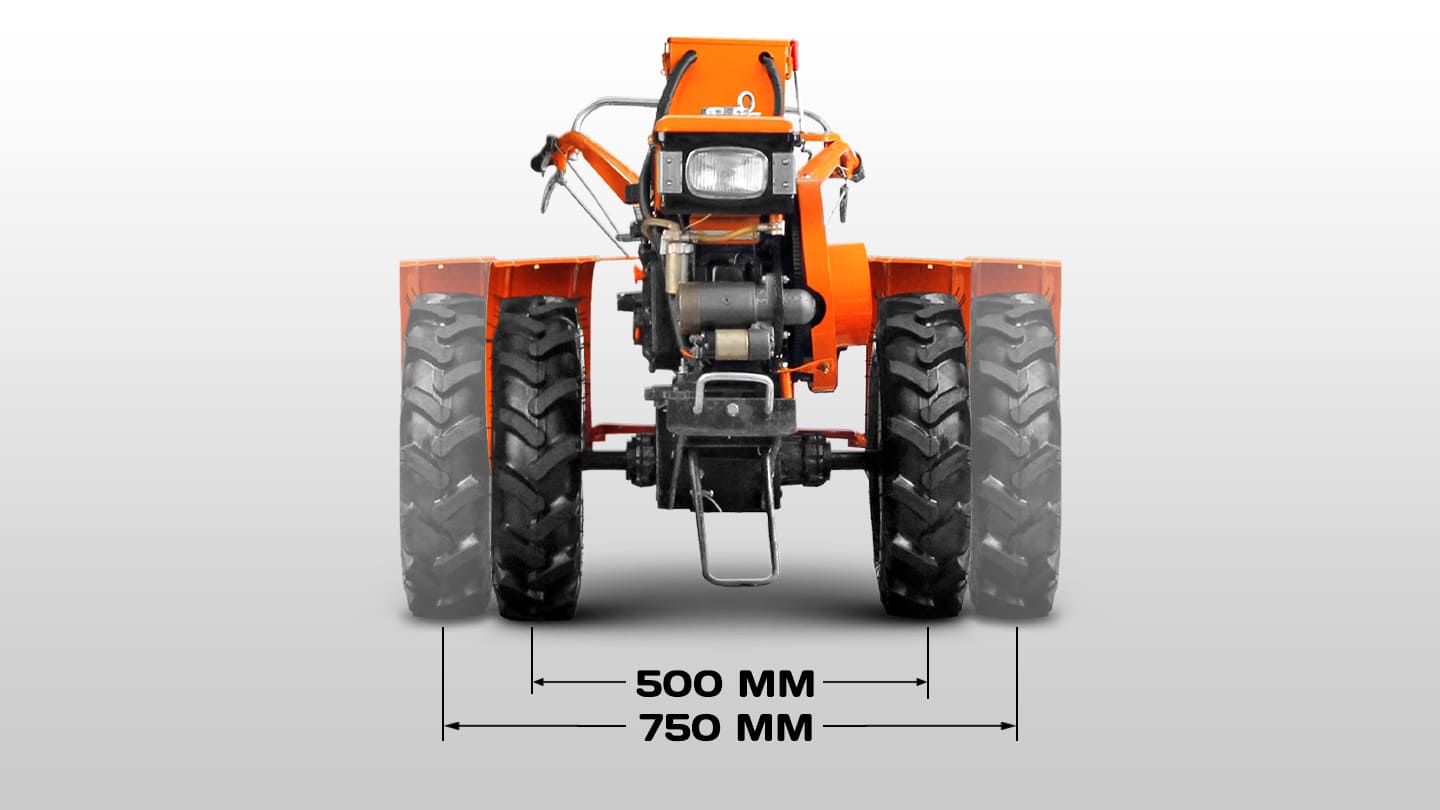 На мотоблоке 2091 возможности трансмиссии гораздо скромнее – только 3 скорости вперед с одной пониженной передачей и одна назад. Диапазон скоростей от 5 до 18 км/ч. Разблокировка дифференциала отсутствует, но из-за гораздо меньшего веса этой модели, она и не требуется, да и в комплекте с мотоблоком идут поворотные ступицы.