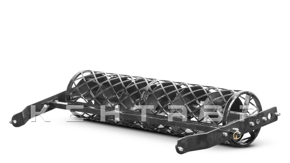 Каток выполнен в клетчатом (сетчатом) исполнении и сварен из 6-мм профильных прутков. Конструкция обеспечивает сочетание прочности и эффективной работы по структуре почвы: сетка не «замазывает» поверхность сплошным контактом, а воздействует точечно по всей окружности, за счёт чего комья дополнительно разрушаются и выравнивание получается более стабильным. Клетчатая структура также улучшает самоочистку в сравнении со сплошными катками — почва меньше накапливается на рабочей поверхности, а барабан сохраняет рабочий профиль при переменной влажности. Жёсткость сварной решётки рассчитана на опорную нагрузку и уплотнение без деформаций при работе на плотных грунтах.